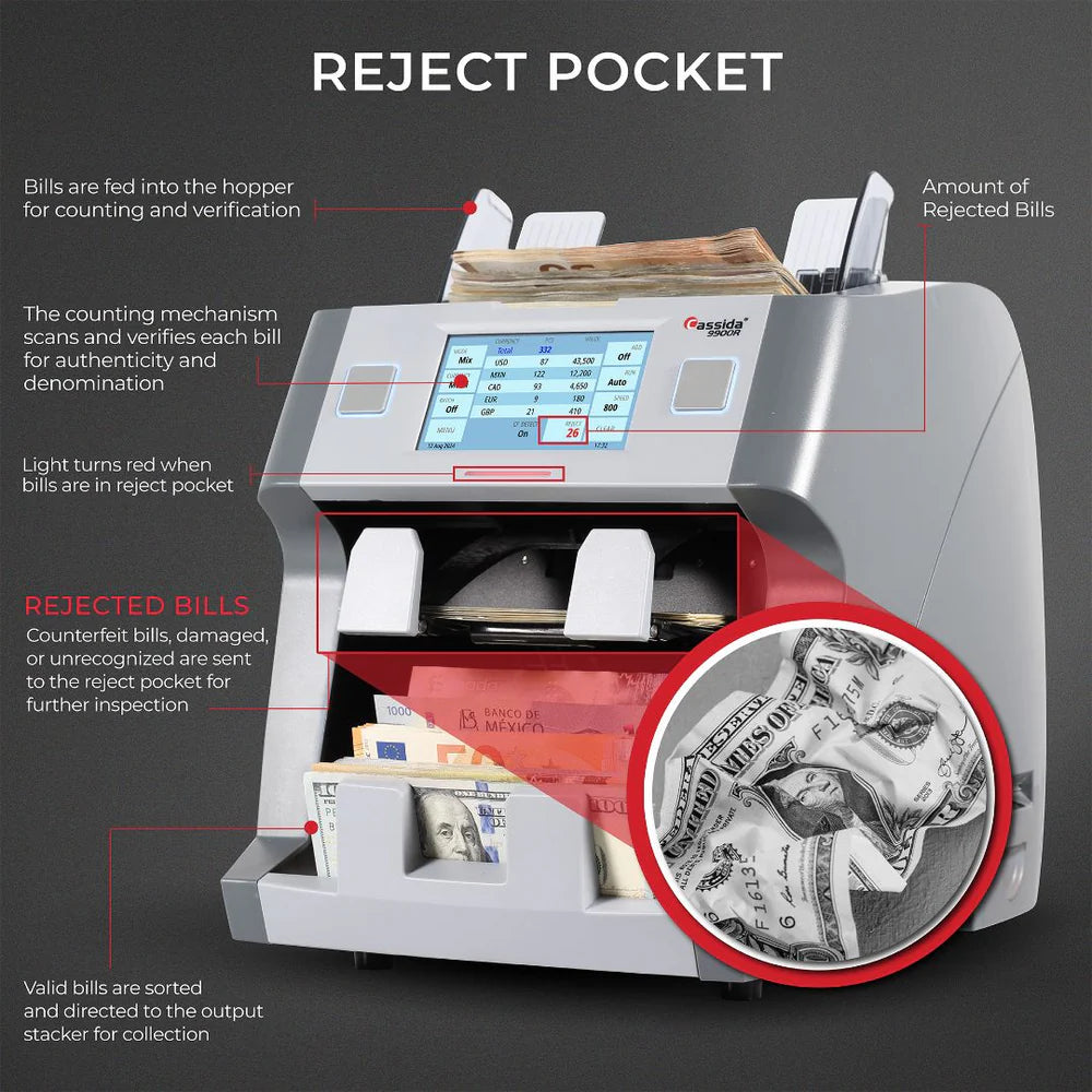 - Versatile and Accurate: The 9900R V2 is capable of counting both value and number of bills, sorting by Denomination, Face, and Orientation, and handling mixed denominations and currencies with precision