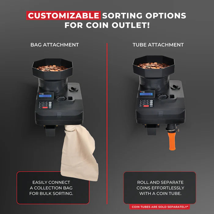 - Quality and Warranty: Sized to easily fit on a table or desk. The front-located coin dispenser will send counted coins to a bag, bin or coin tube of your choice.